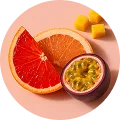 / Un mix vivace di agrumi e frutti esotici – come arancia rossa, limone, pompelmo, mango e frutto della passione.